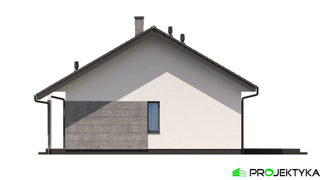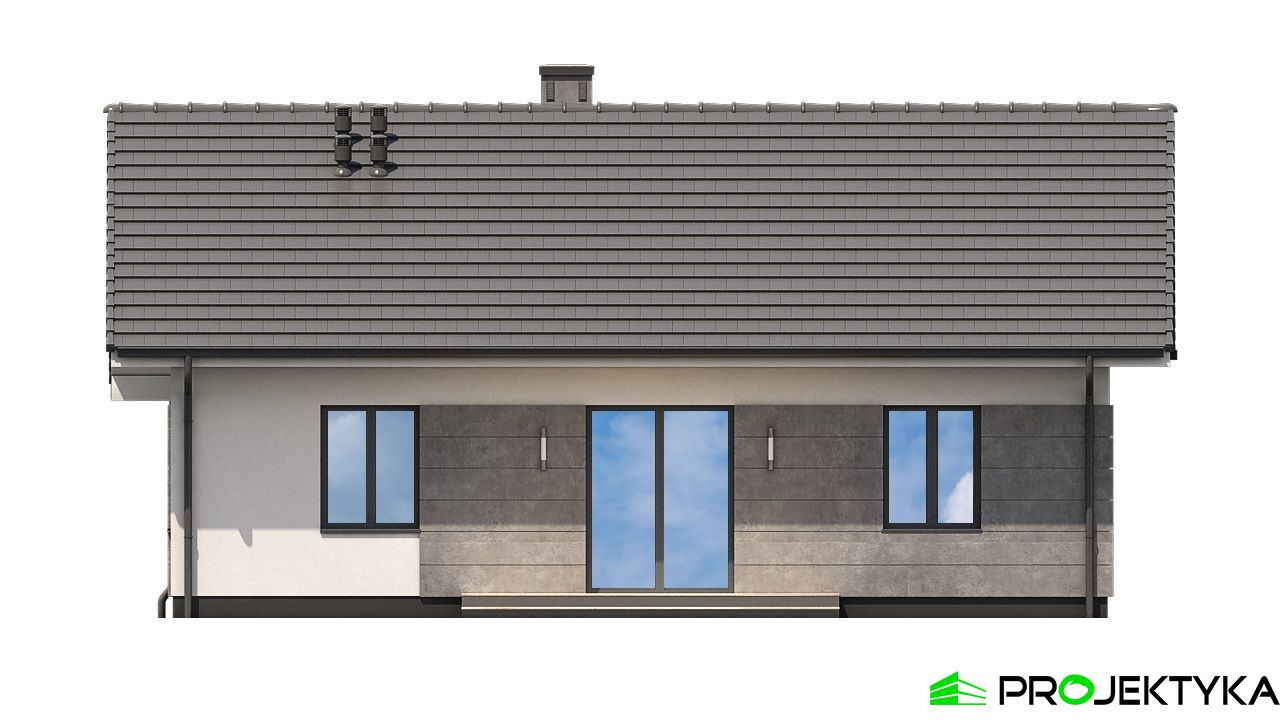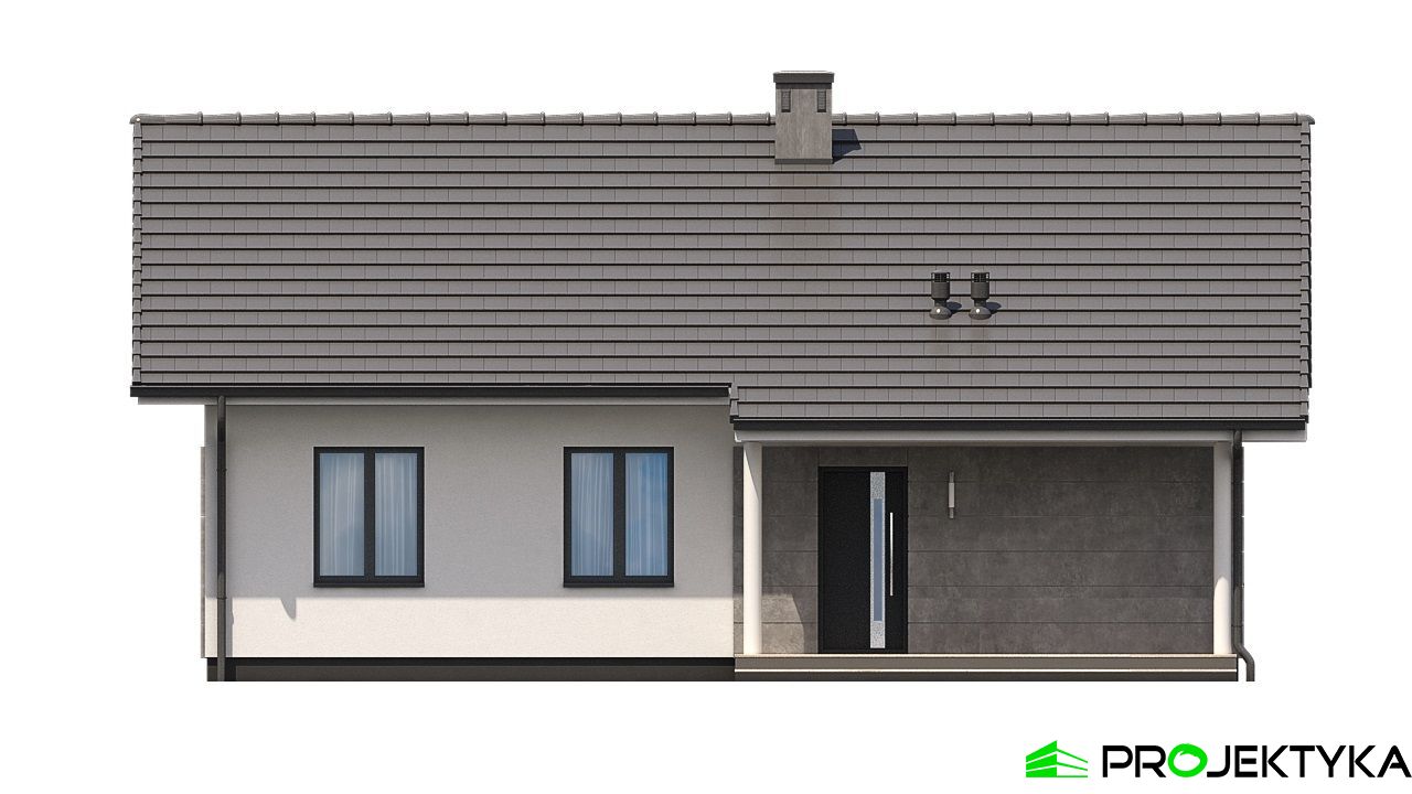 Ka121 to gotowy projekt domu minimalistycznego, dla niewielkiej rodziny. Ma powierzchnię zaledwie 75.68 m2, ale zapewnia wszelkie niezbędne wygody. Zrealizowany w stylu tradycyjnym projekt domu jednorodzinnego nie uwzględnia garażu ani poddasza. Przewidziane jest dla niego ogrzewanie gazowe. Całość skryta jest pod dwuspadowym dachem, nadającym całemu domowi elegancji. Wnętrze podzielone zostało na dwie strefy – po stronie lewej od wejścia znajdują się trzy sypialnie, z których jedna uwzględnia garderobę. Wchodzi się do nich bezpośrednio z salonu połączonego z jadalnią i aneksem kuchennym w jedną, przestronną strefę dzienną. Blisko drzwi frontowych, umieszczono także przestronną łazienkę z WC oraz pomieszczenie gospodarcze. Pomimo niewielkich wymiarów działki koniecznych do realizacji tego projektu, znalazło się tu miejsce na taras w tylnej części budynku. Uniwersalny profil dachu oraz nowoczesna elewacja czynią ten dom ciekawym projektem wśród domów parterowych w ofercie.