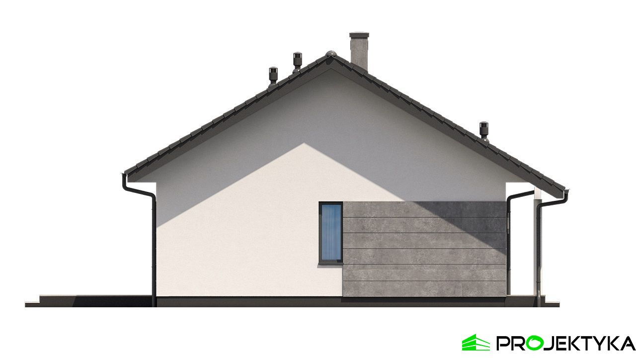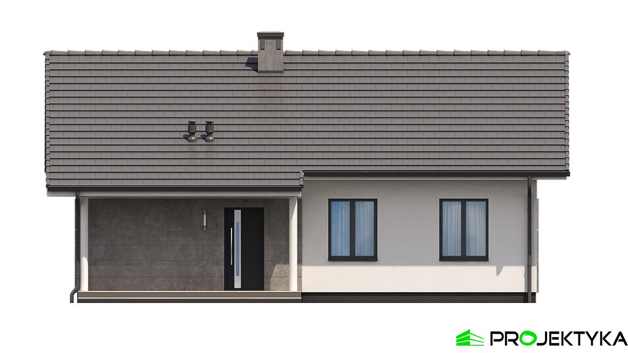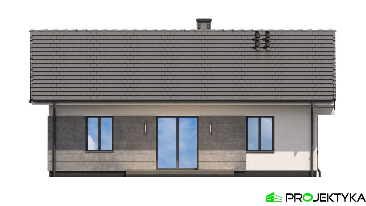Ka121 to gotowy projekt domu minimalistycznego, dla niewielkiej rodziny. Ma powierzchnię zaledwie 75.68 m2, ale zapewnia wszelkie niezbędne wygody. Zrealizowany w stylu tradycyjnym projekt domu jednorodzinnego nie uwzględnia garażu ani poddasza. Przewidziane jest dla niego ogrzewanie gazowe. Całość skryta jest pod dwuspadowym dachem, nadającym całemu domowi elegancji. Wnętrze podzielone zostało na dwie strefy – po stronie lewej od wejścia znajdują się trzy sypialnie, z których jedna uwzględnia garderobę. Wchodzi się do nich bezpośrednio z salonu połączonego z jadalnią i aneksem kuchennym w jedną, przestronną strefę dzienną. Blisko drzwi frontowych, umieszczono także przestronną łazienkę z WC oraz pomieszczenie gospodarcze. Pomimo niewielkich wymiarów działki koniecznych do realizacji tego projektu, znalazło się tu miejsce na taras w tylnej części budynku. Uniwersalny profil dachu oraz nowoczesna elewacja czynią ten dom ciekawym projektem wśród domów parterowych w ofercie.