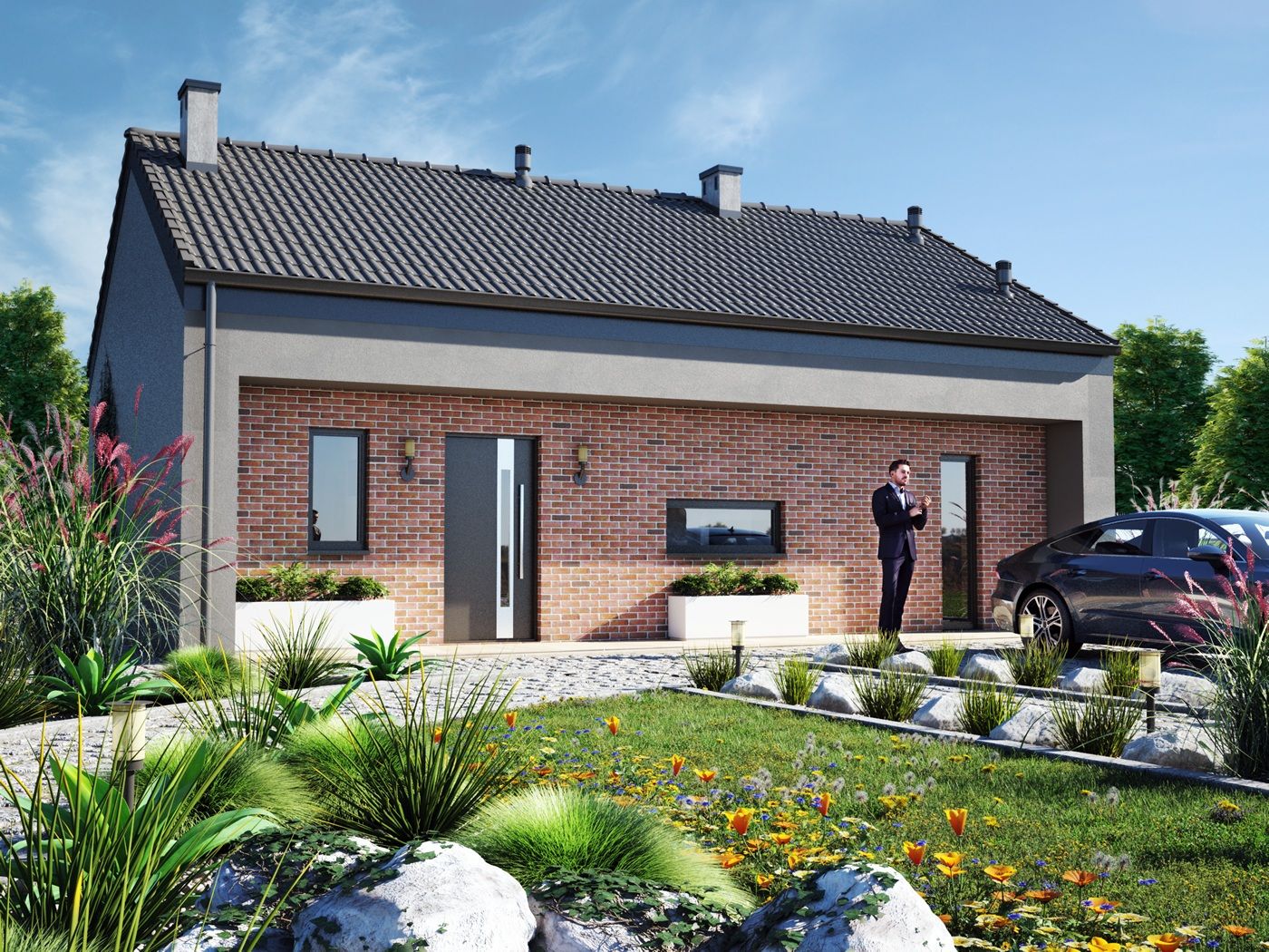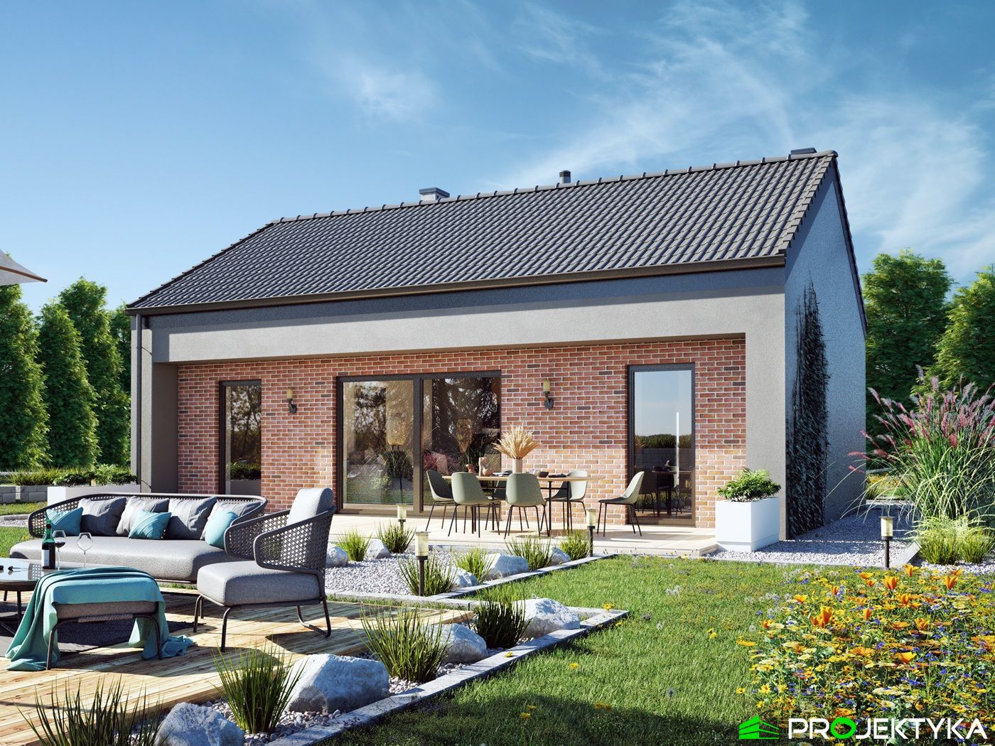 Projekt Ka185 to idealna propozycja dla osób szukających nowoczesnego, parterowego domu, który można wybudować na zgłoszenie do 70 m² powierzchni zabudowy. Funkcjonalny układ o powierzchni użytkowej 53,51 m² obejmuje 2 sypialnie, przestronny salon z aneksem kuchennym, komfortową łazienkę oraz pomieszczenie gospodarcze — wszystko, czego potrzeba do wygodnego życia. Prosta bryła, dwuspadowy dach o kącie nachylenia 30° i technologia murowana sprawiają, że budowa jest szybka, tania i bezproblemowa. Projekt Ka185 doskonale sprawdzi się jako dom całoroczny łączący nowoczesny design, niskie koszty realizacji i maksymalne wykorzystanie przestrzeni. To gotowy projekt, który cieszy się zainteresowaniem inwestorów poszukujących domu bez formalności i z dużym potencjałem użytkowym.