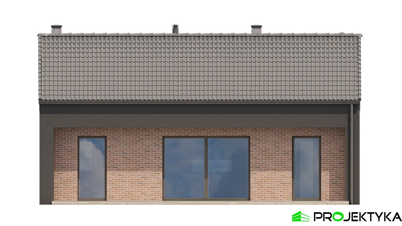 Projekt Ka185 Sz w technologii szkieletowej drewnianej to doskonała propozycja dla inwestorów poszukujących szybkiego w budowie domu na zgłoszenie do 70 m² powierzchni zabudowy. Parterowy układ obejmuje 2 sypialnie, jasny salon z aneksem kuchennym, łazienkę oraz pomieszczenie gospodarcze – idealny zestaw dla pary lub rodziny 2+1. Drewniana konstrukcja pozwala na błyskawiczną realizacji, a prosta bryła i dwuspadowy dach o kącie nachylenia 30° obniżą koszty budowy. Możliwość budowy tego domu na zgłoszenie czyni projekt Ka185 Sz wyjątkowo atrakcyjnym wyborem dla osób ceniących czas i ekonomiczne rozwiązania.