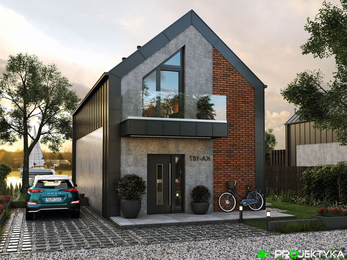 Projekt Ka187 to kompaktowy, nowoczesny dom parterowy z poddaszem użytkowym na zgłoszenie do 70 m². To idealny wybór dla inwestorów szukających całorocznego domu bez garażu, który zapewnia pełen komfort mieszkania przy niskich kosztach budowy i eksploatacji.