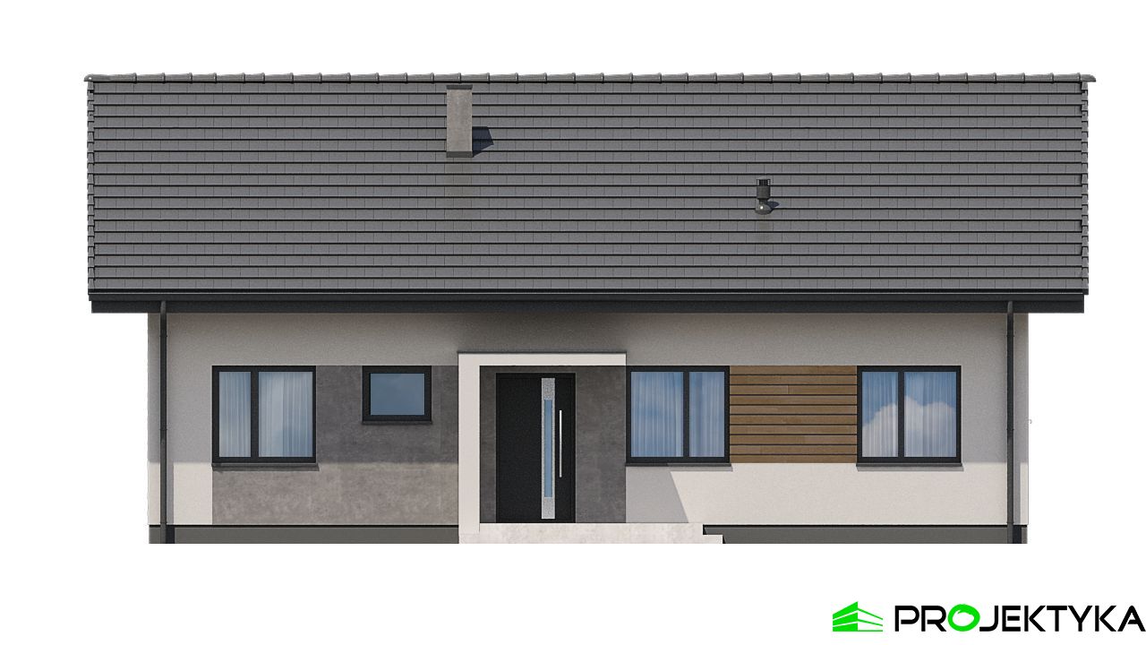 Ka201 Sz to projekt domu parterowego, wykonany w technologii szkieletowej. Został stworzony z myślą o inwestorach poszukujących niewielkiego domu, oszczędnego w eksploatacji, ale ponadczasowo pięknego. Jego powierzchnia mieszkalna 86.67 m2 została zagospodarowana w bardzo ciekawy sposób. Ten projekt domu z dachem dwuspadowym posiada strych na poddaszu i niewielki taras na tyłach domu. Centralną część domu stanowi strefa dzienna – kuchnia z oknami od strony frontowej i przestronny salon z jadalnią. Pomimo stosunkowo niewielkiej powierzchni, to dom przeznaczony dla sporej rodziny, gdyż uwzględniono w nim aż cztery pokoje. Po lewej stronie domu znajdują się dwie sypialnie, WC oraz pomieszczenie gospodarcze, natomiast po prawej – łazienka, kolejna sypialnia i pokój, który można wykorzystać jako gabinet. Sposób usytuowania pomieszczeń sprawia, że ten jednorodzinny dom jest funkcjonalny i komfortowy w użytkowaniu.