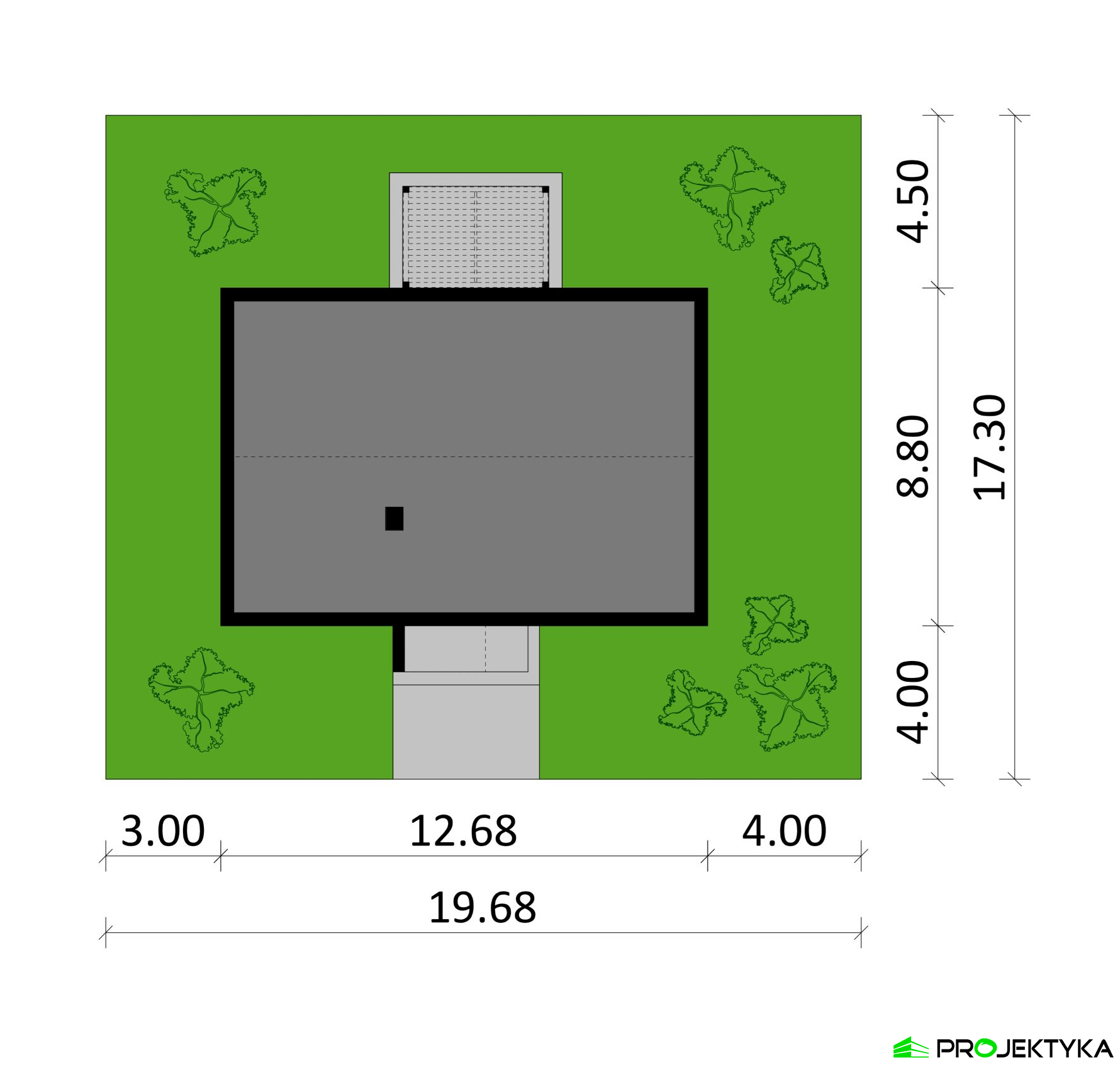 Min. wymiary działki | 19.68 m / 17.3 m |
