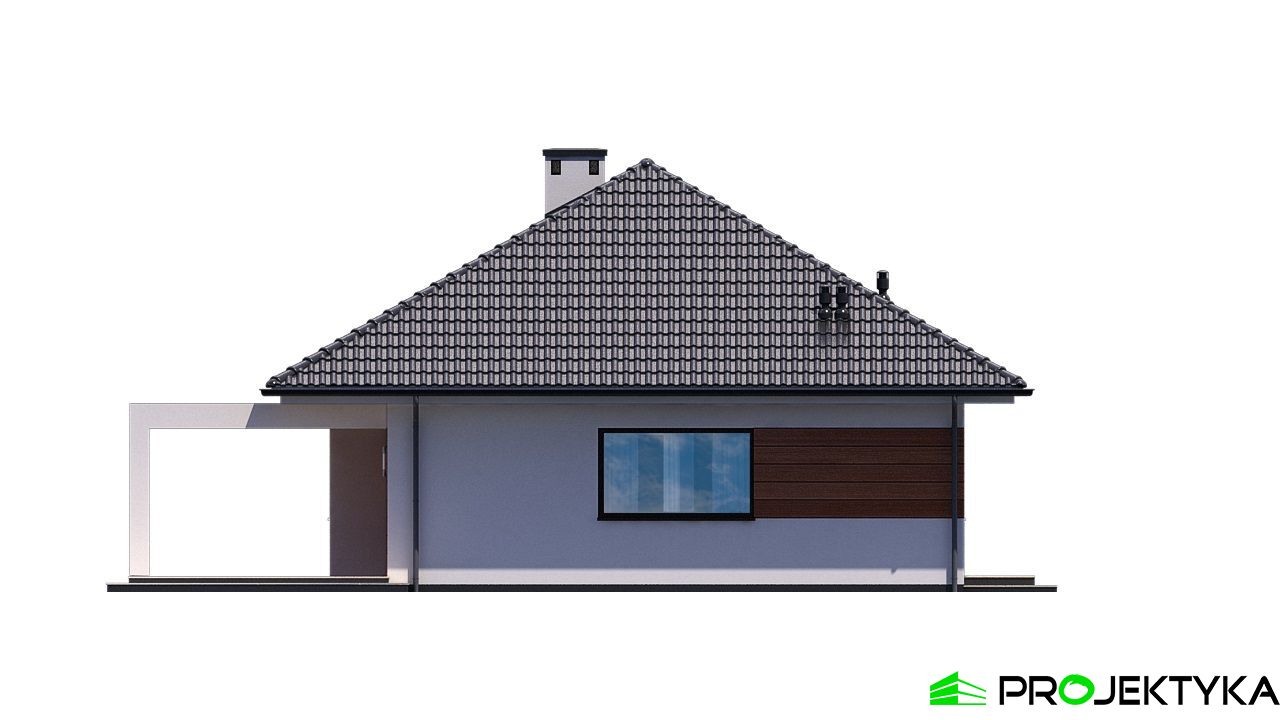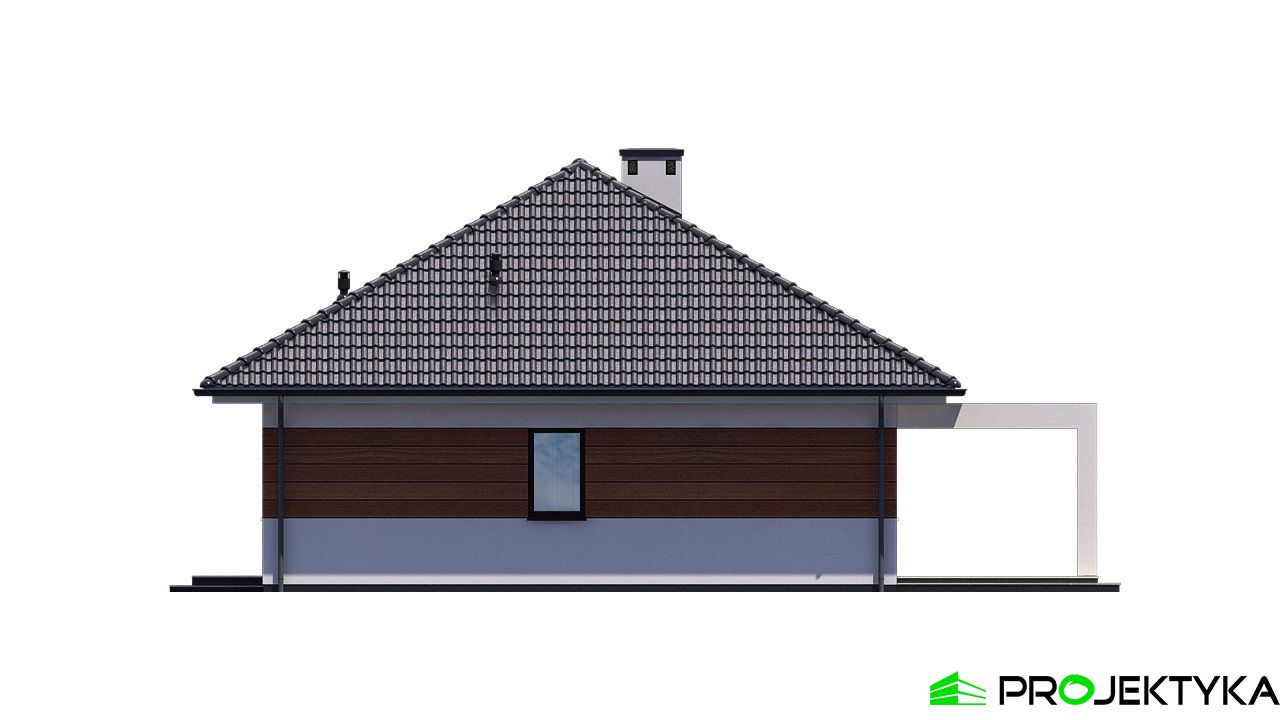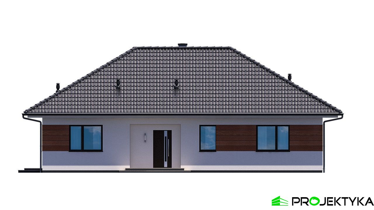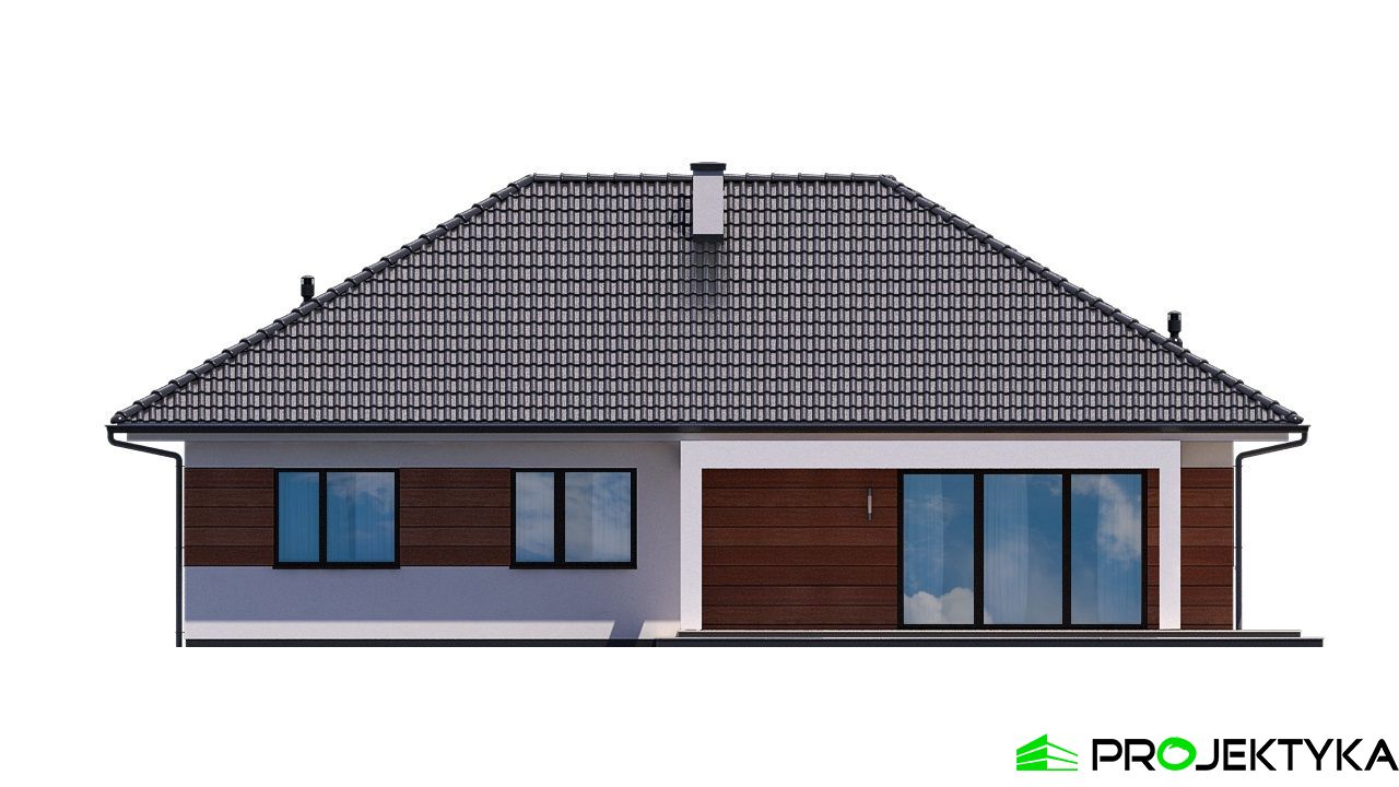 Ka21 tani w budowie gotowy projekt domu na wąską działkę. Konstrukcja wykonana w technologii murowanej została zwieńczona czterospadowym dachem. Tynk strukturalny z którego wykonano elewację budynku, urozmaicono drewnianymi palisadami. Powierzchnia użytkowa wynosi 105,98 m2, na której znajdziemy 2 łazienki oraz 4 pokoje, w tym 3 sypialnie.