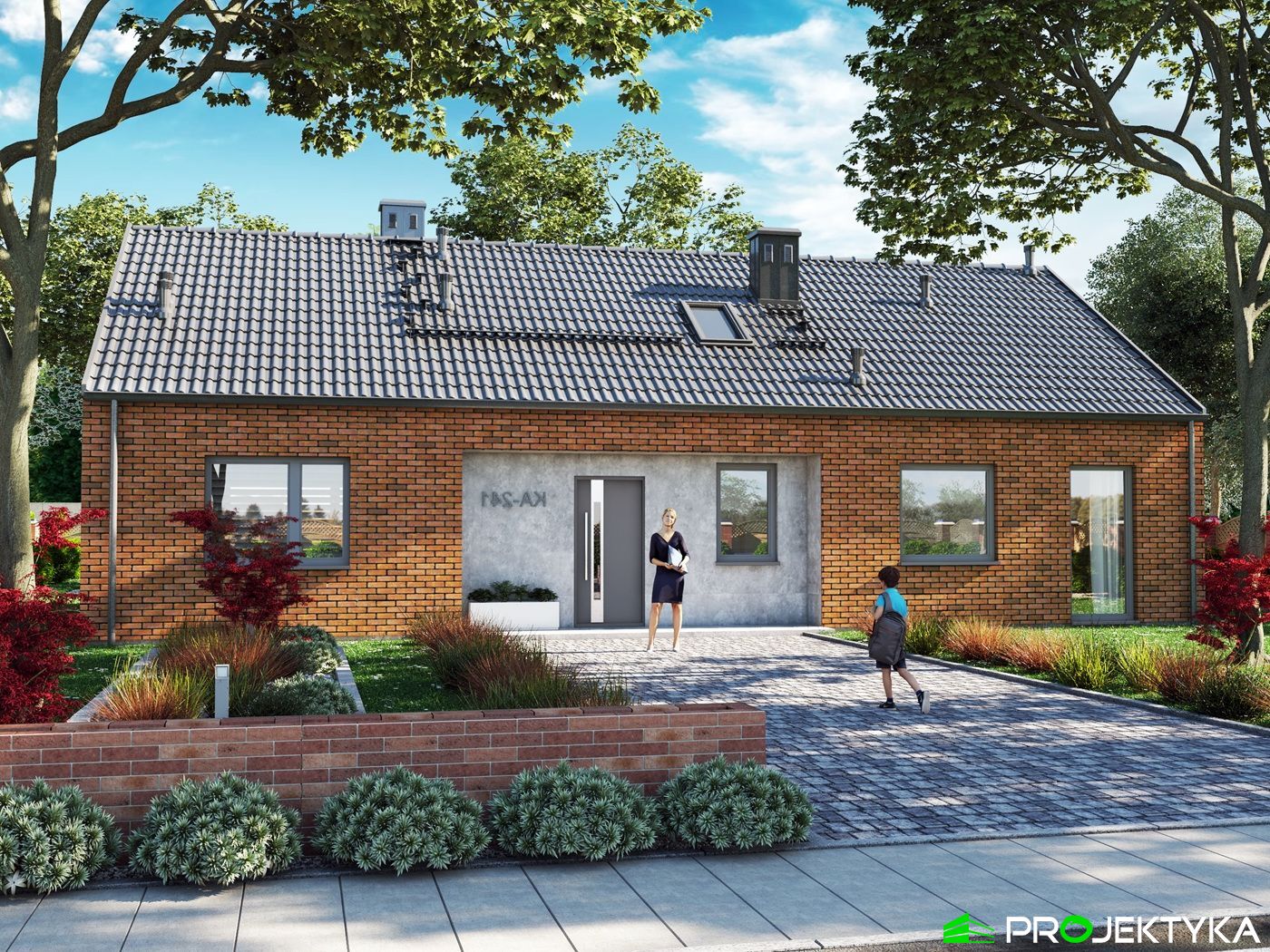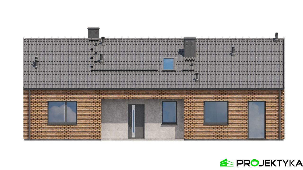 Dodatkowym atutem projektu jest pomieszczenie gospodarcze, które może pełnić funkcję kotłowni lub schowka na sprzęt domowy. Prosta konstrukcja, niewielka powierzchnia zabudowy i przemyślany układ pomieszczeń czynią Ka241 idealnym wyborem dla osób szukających ekonomicznego i wygodnego domu parterowego.