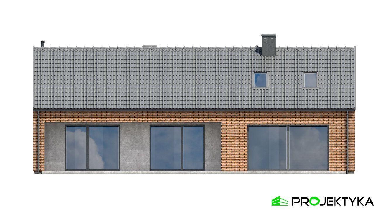 Ka241 Sz to funkcjonalny, ekonomiczny dom parterowy w technologii szkieletowej drewnianej o powierzchni użytkowej 100,36 m², zaprojektowany z myślą o rodzinach, które cenią komfort, prosty układ i niskie koszty budowy. Klasyczna bryła z dwuspadowym dachem doskonale wpisuje się zarówno w miejskie, jak i podmiejskie działki.