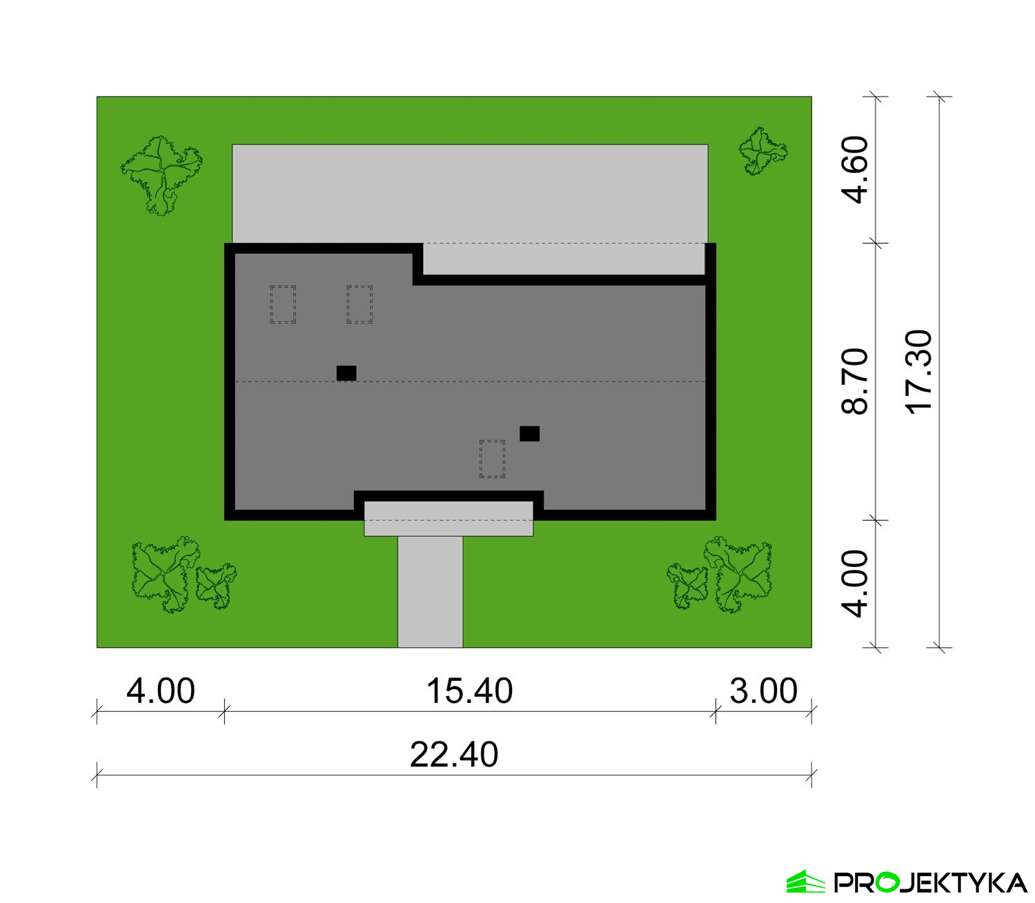 | Min. wymiary działki | 22.4 m / 17.3 m |