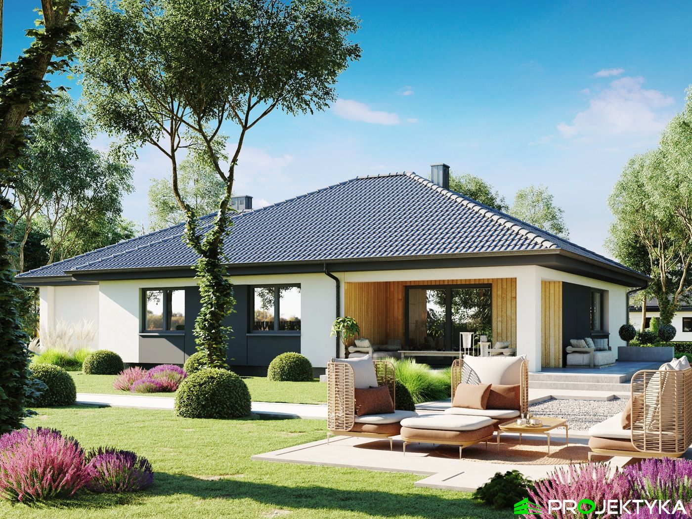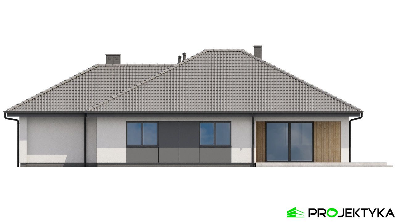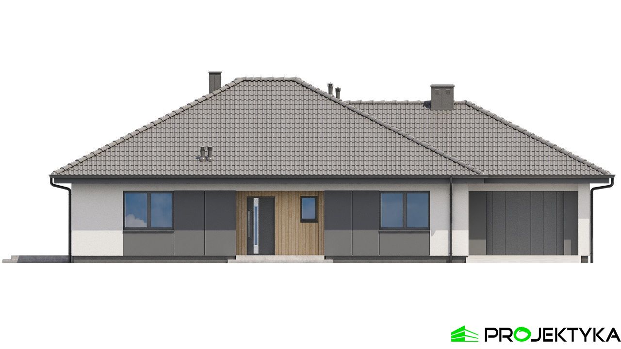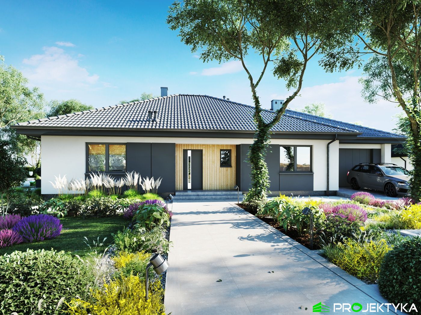 Wielospadowy dach o kącie nachylenia 27 st. nadaje bryle lekkości, a duże przeszklenia wprowadzają naturalne światło do pomieszczeń. Elewacja łącząca drewno z białym i szarym tynkiem sprawia, że Ka276 prezentuje się nowocześnie, a zarazem przytulnie. Jest to świetna propozycja dla tych, którzy cenią sobie komfort i estetykę w jednym.