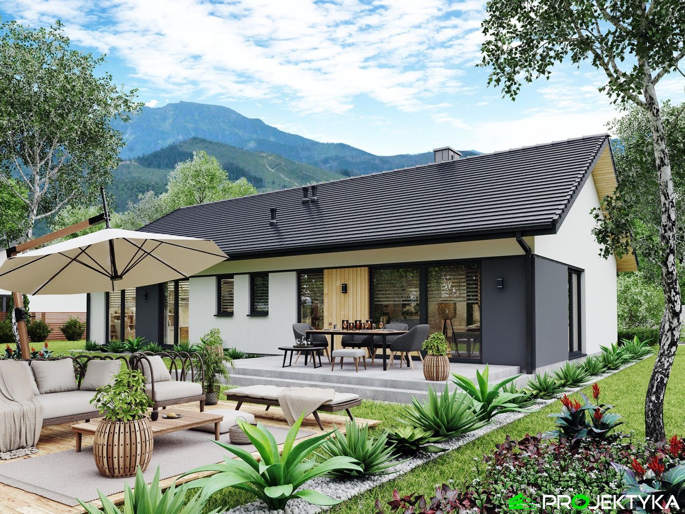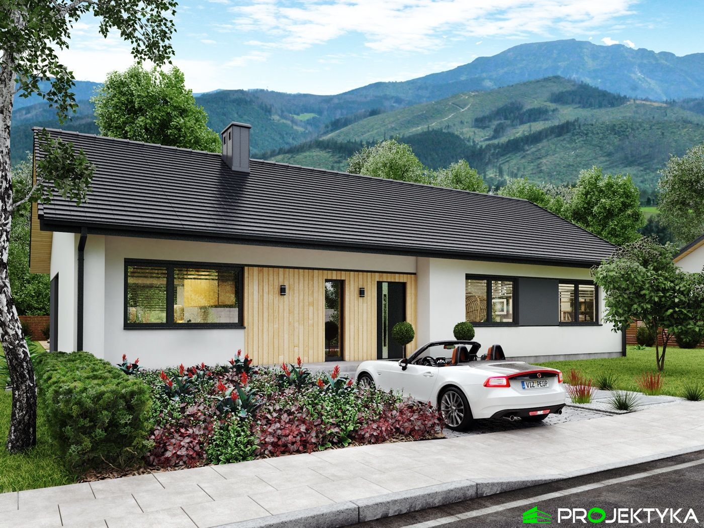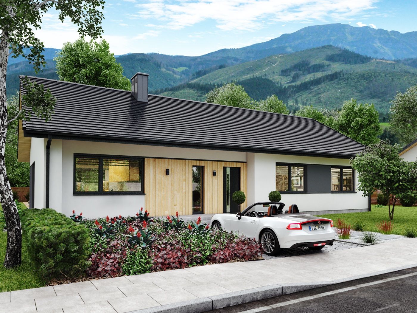 Projekt Ka280 to klasyczny, parterowy dom o powierzchni użytkowej 129,25 m², stworzony z myślą o rodzinach ceniących przestrzeń i funkcjonalność. Wnętrze obejmuje duży salon z jadalnią, kuchnię ze spiżarnią, 4 sypialnie, garderobę, 2 łazienki oraz pomieszczenie techniczne z pompą ciepła. Przemyślany układ zapewnia wygodny podział na strefę dzienną i nocną, zapewniając komfort i prywatność. Budynek o prostej bryle, z dachem dwuspadowym o kącie 30°, został zaprojektowany w technologii murowanej. Ka280 to doskonały wybór dla inwestorów szukających funkcjonalnego domu parterowego z nowoczesnym wyglądem i praktycznym wnętrzem.
