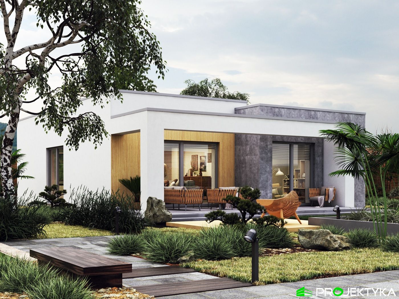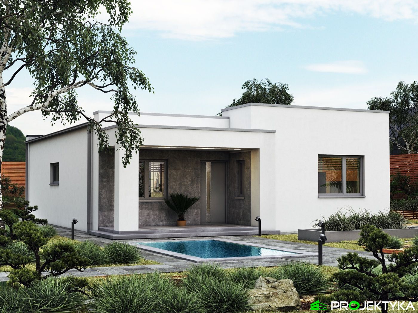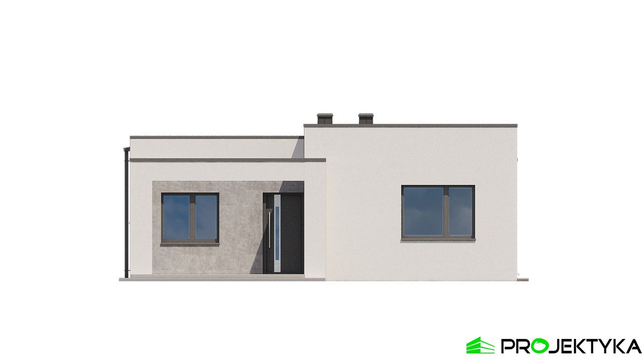 Ka281 to nowoczesny parterowy projekt domu o powierzchni użytkowej 90,93 m², zaprojektowany z myślą o rodzinie 2–3 osobowej. Prosta bryła z płaskim dachem i dużymi przeszkleniami wyróżnia się współczesnym stylem i zapewnia świetne doświetlenie wnętrza. Funkcjonalny układ pomieszczeń składa się z przestronnego salonu z jadalnią, dwóch komfortowych sypialni, wygodnej łazienki oraz praktycznego pomieszczenia technicznego. To propozycja łącząca estetykę, komfort i oszczędność, idealna dla osób ceniących wygodę.