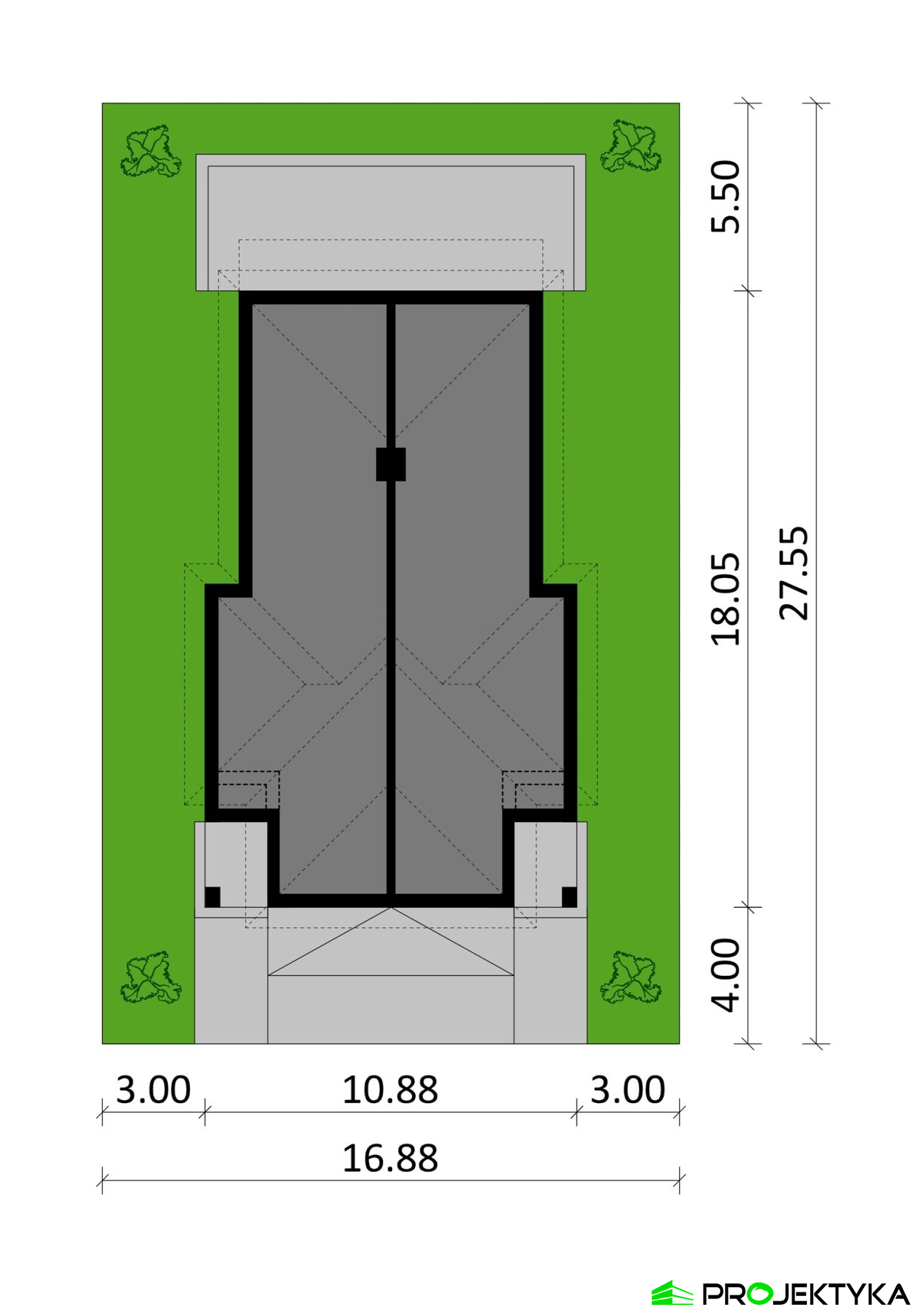 | Min. wymiary działki | 16.88 m / 27.55 m |