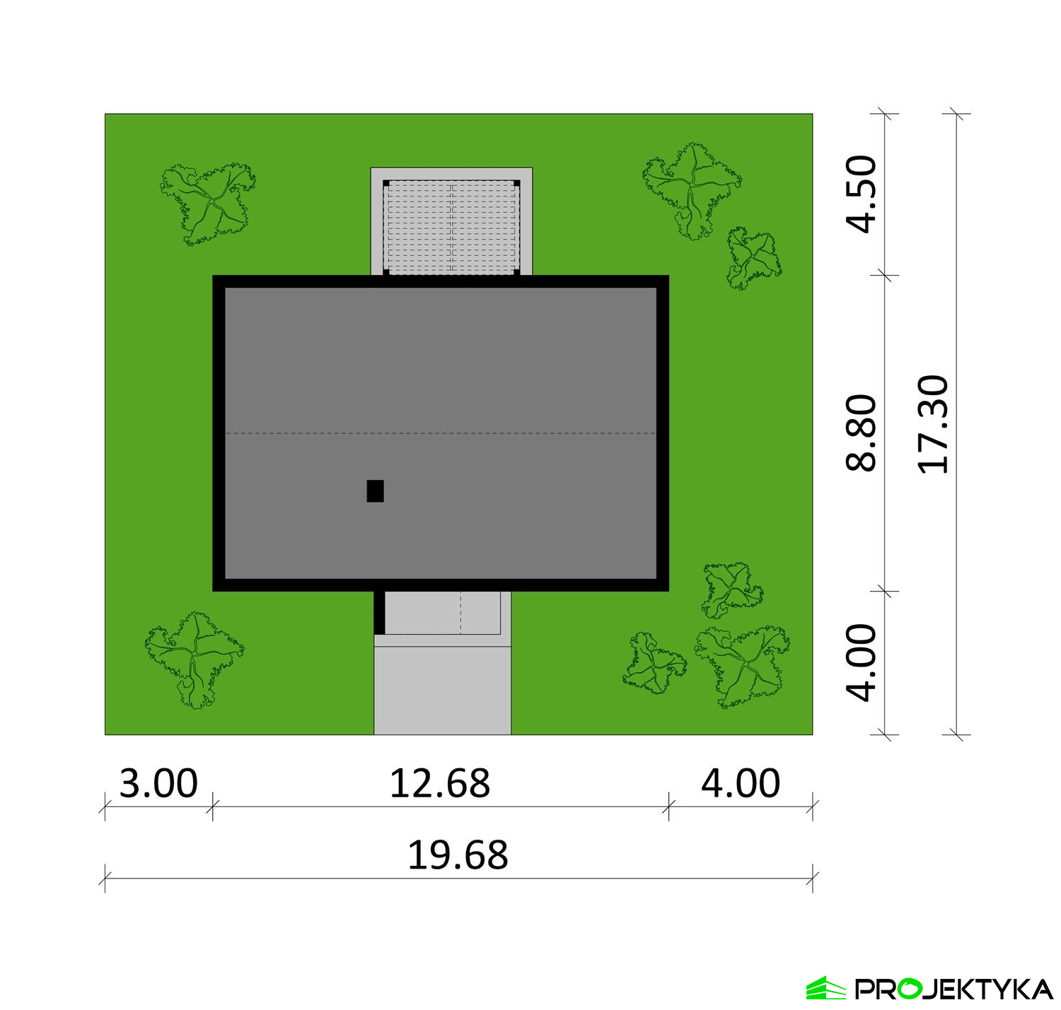 Projekt Ka294 Sz można zrealizować nawet na niewielkich działkach – minimalne wymagane wymiary to 19.68 x 17.30 m.