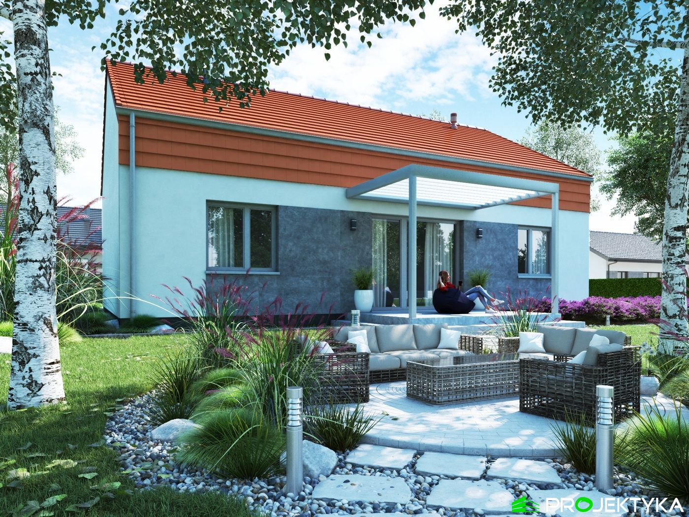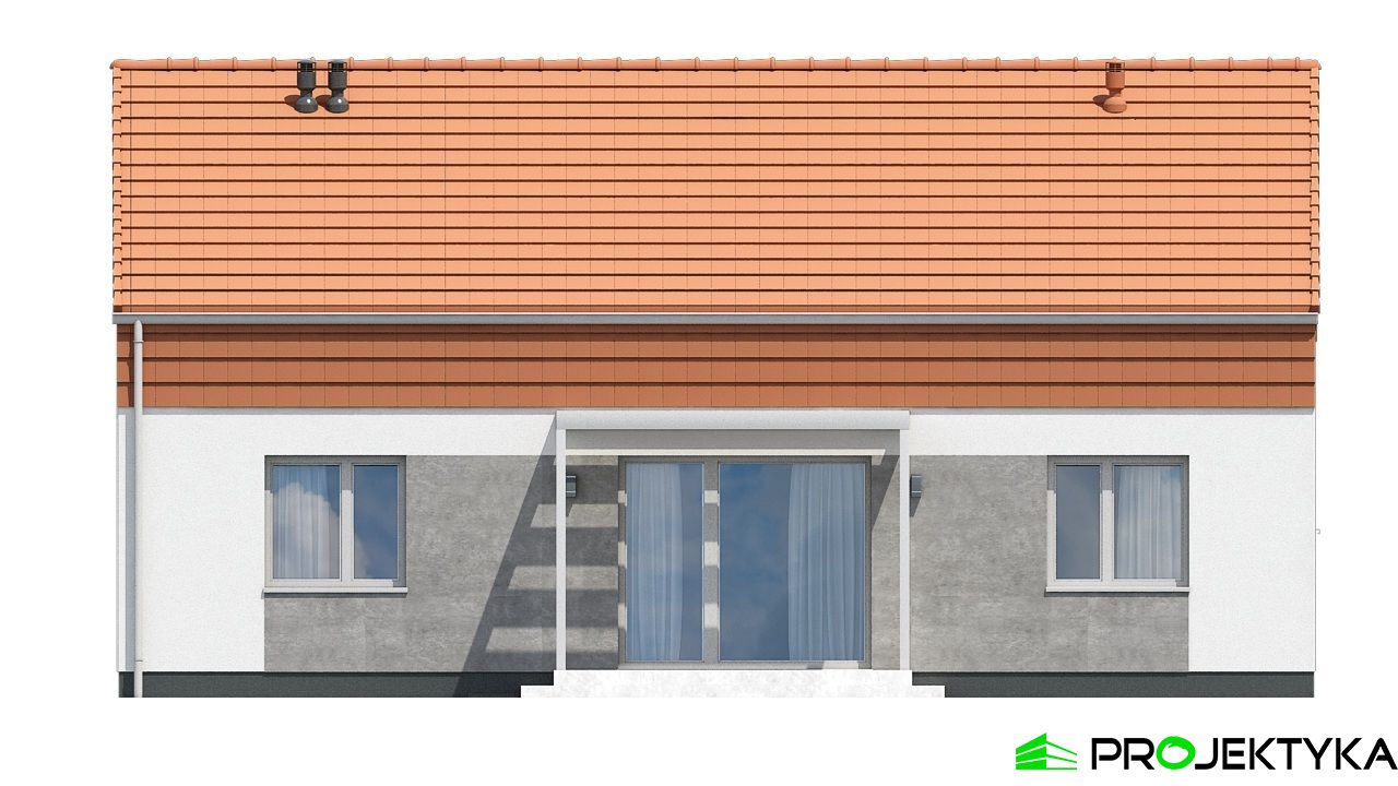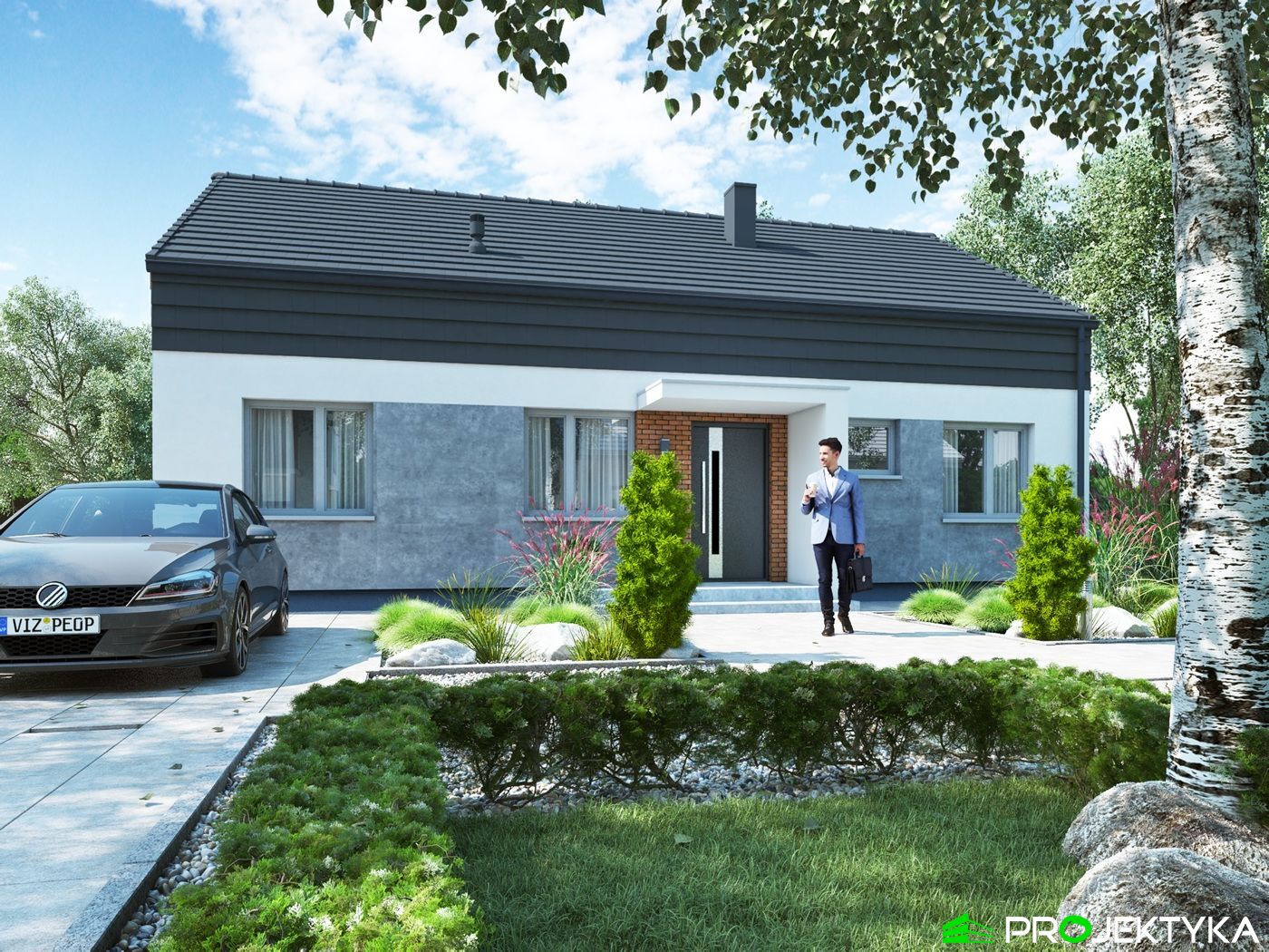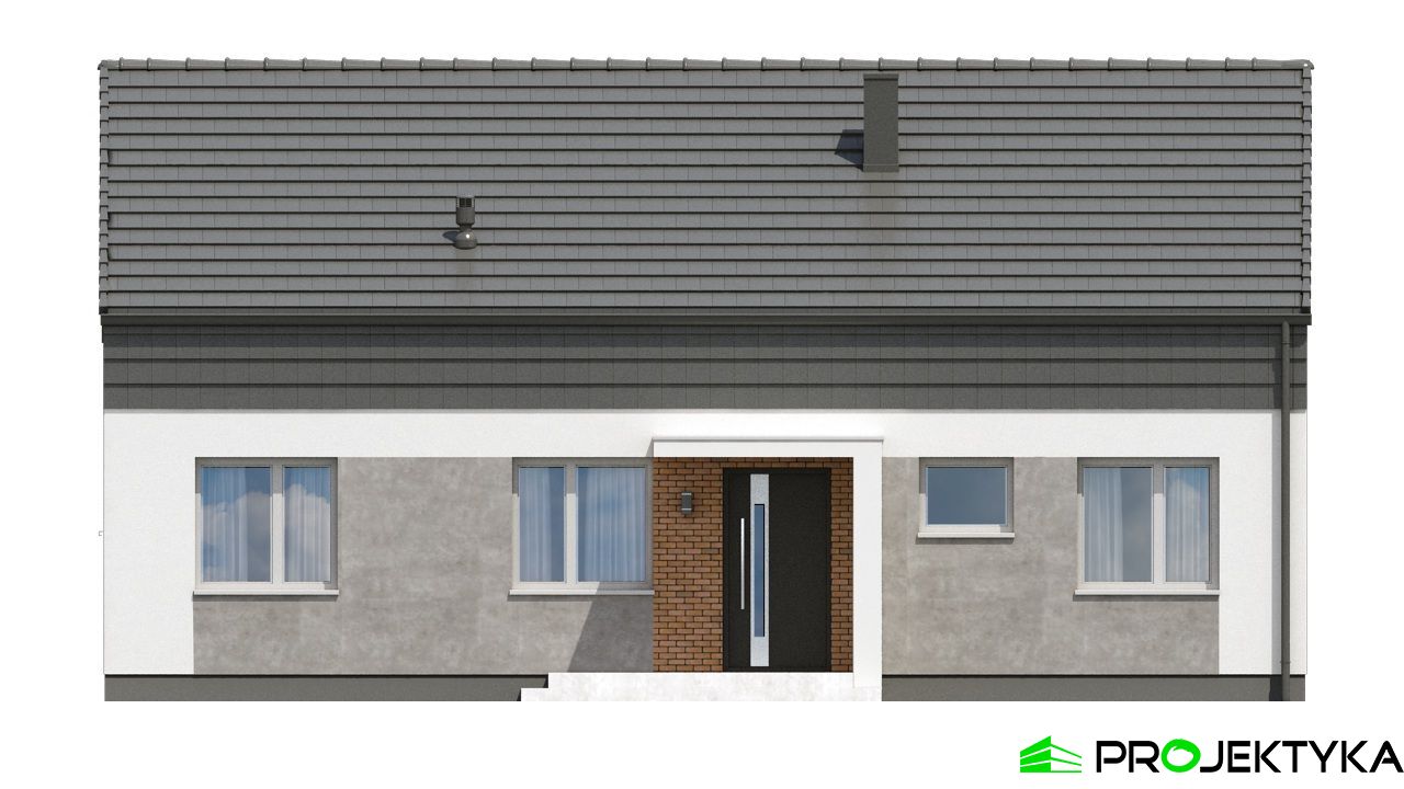 Ka294 Sz to projekt domu parterowego, wykonany w technologii szkieletowej. Został stworzony z myślą o inwestorach poszukujących niewielkiego domu, oszczędnego w eksploatacji, ale ponadczasowo pięknego. Jego powierzchnia mieszkalna 90,91 m2 została zagospodarowana w bardzo ciekawy sposób. Ten projekt domu z dachem dwuspadowym posiada strych na poddaszu i niewielki taras na tyłach domu. Centralną część domu stanowi strefa dzienna – kuchnia z oknami od strony frontowej i przestronny salon z jadalnią. Pomimo stosunkowo niewielkiej powierzchni, to dom przeznaczony dla sporej rodziny, gdyż uwzględniono w nim aż cztery pokoje. Po lewej stronie domu znajdują się dwie sypialnie, WC oraz pomieszczenie gospodarcze, natomiast po prawej – łazienka, kolejna sypialnia i pokój, który można wykorzystać jako gabinet. Sposób usytuowania pomieszczeń sprawia, że ten jednorodzinny dom jest funkcjonalny i komfortowy w użytkowaniu.