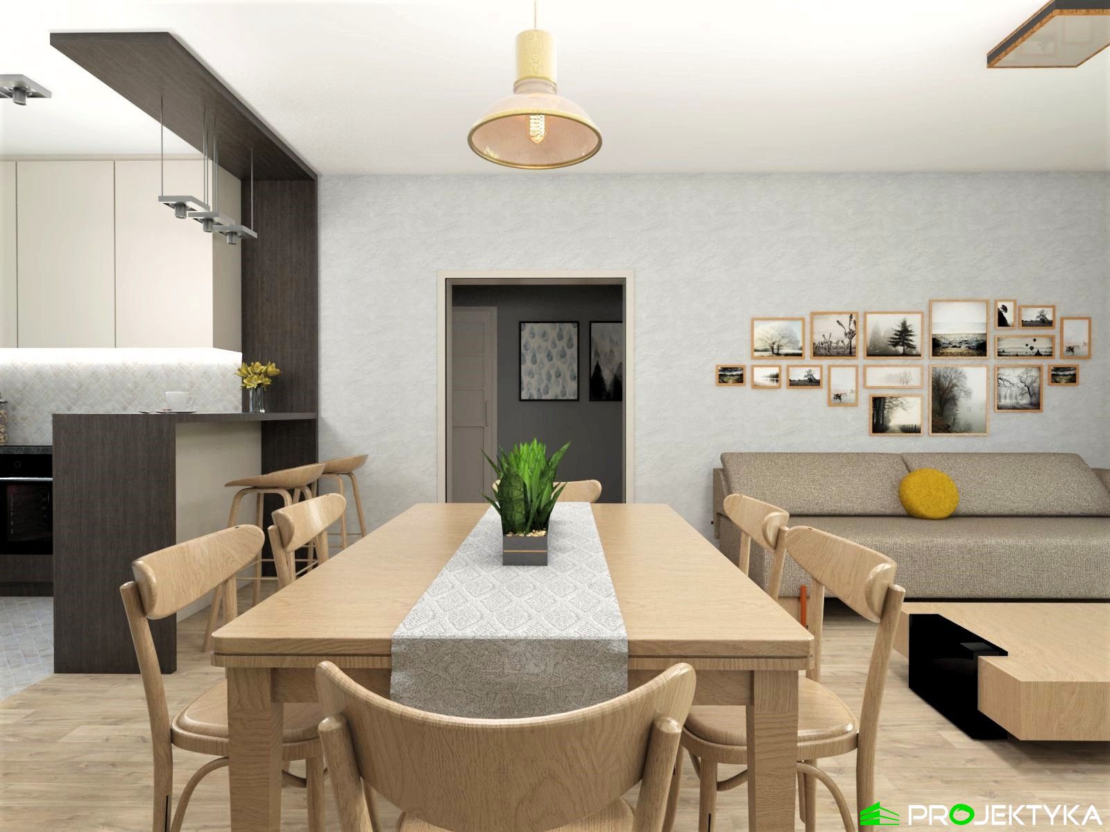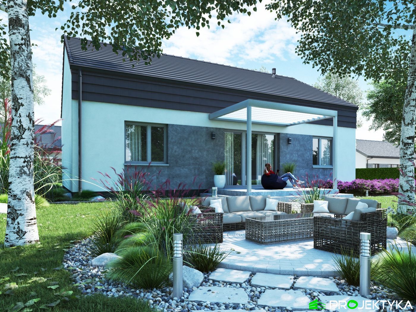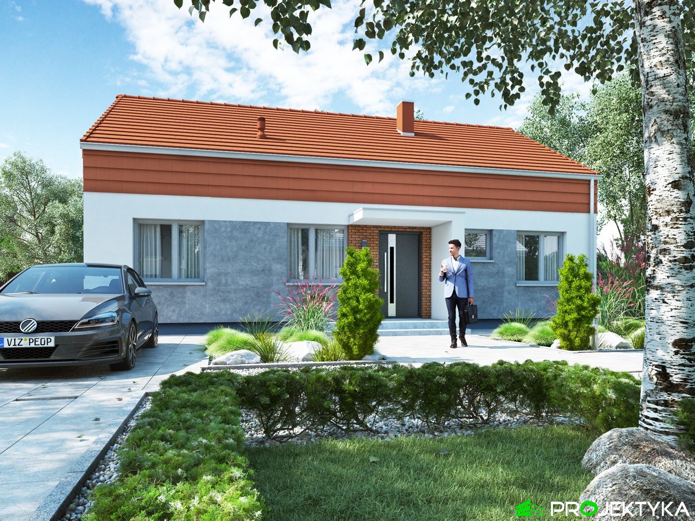 Ka294 Sz to projekt domu parterowego, wykonany w technologii szkieletowej. Został stworzony z myślą o inwestorach poszukujących niewielkiego domu, oszczędnego w eksploatacji, ale ponadczasowo pięknego. Jego powierzchnia mieszkalna 90,91 m2 została zagospodarowana w bardzo ciekawy sposób. Ten projekt domu z dachem dwuspadowym posiada strych na poddaszu i niewielki taras na tyłach domu. Centralną część domu stanowi strefa dzienna – kuchnia z oknami od strony frontowej i przestronny salon z jadalnią. Pomimo stosunkowo niewielkiej powierzchni, to dom przeznaczony dla sporej rodziny, gdyż uwzględniono w nim aż cztery pokoje. Po lewej stronie domu znajdują się dwie sypialnie, WC oraz pomieszczenie gospodarcze, natomiast po prawej – łazienka, kolejna sypialnia i pokój, który można wykorzystać jako gabinet. Sposób usytuowania pomieszczeń sprawia, że ten jednorodzinny dom jest funkcjonalny i komfortowy w użytkowaniu.
