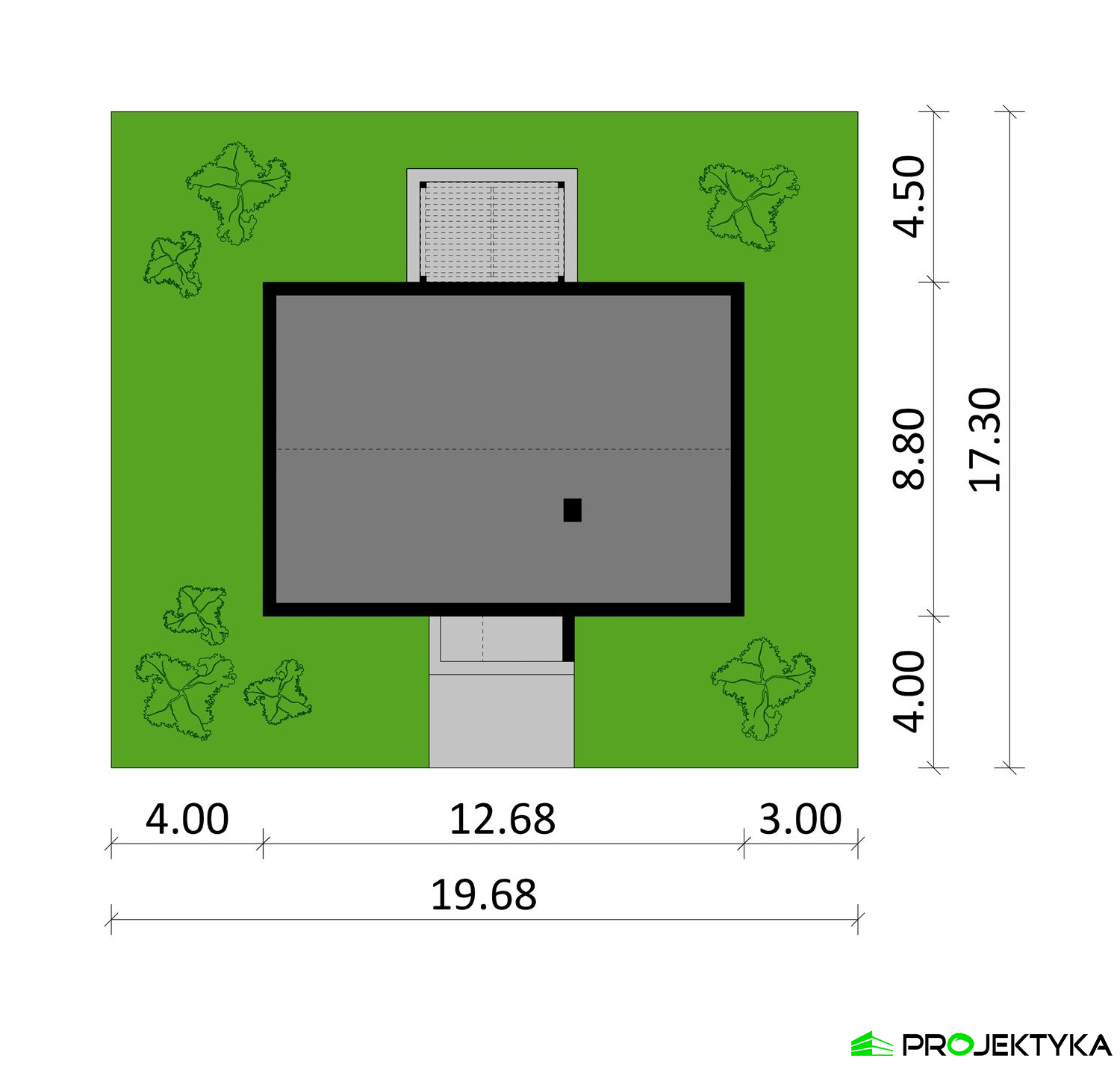 Projekt Ka294 Sz można zrealizować nawet na niewielkich działkach – minimalne wymagane wymiary to 19.68 x 17.30 m.