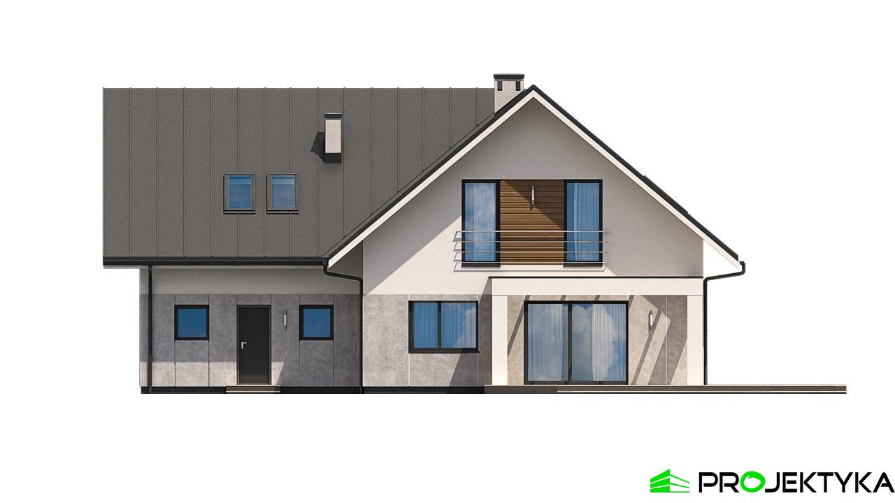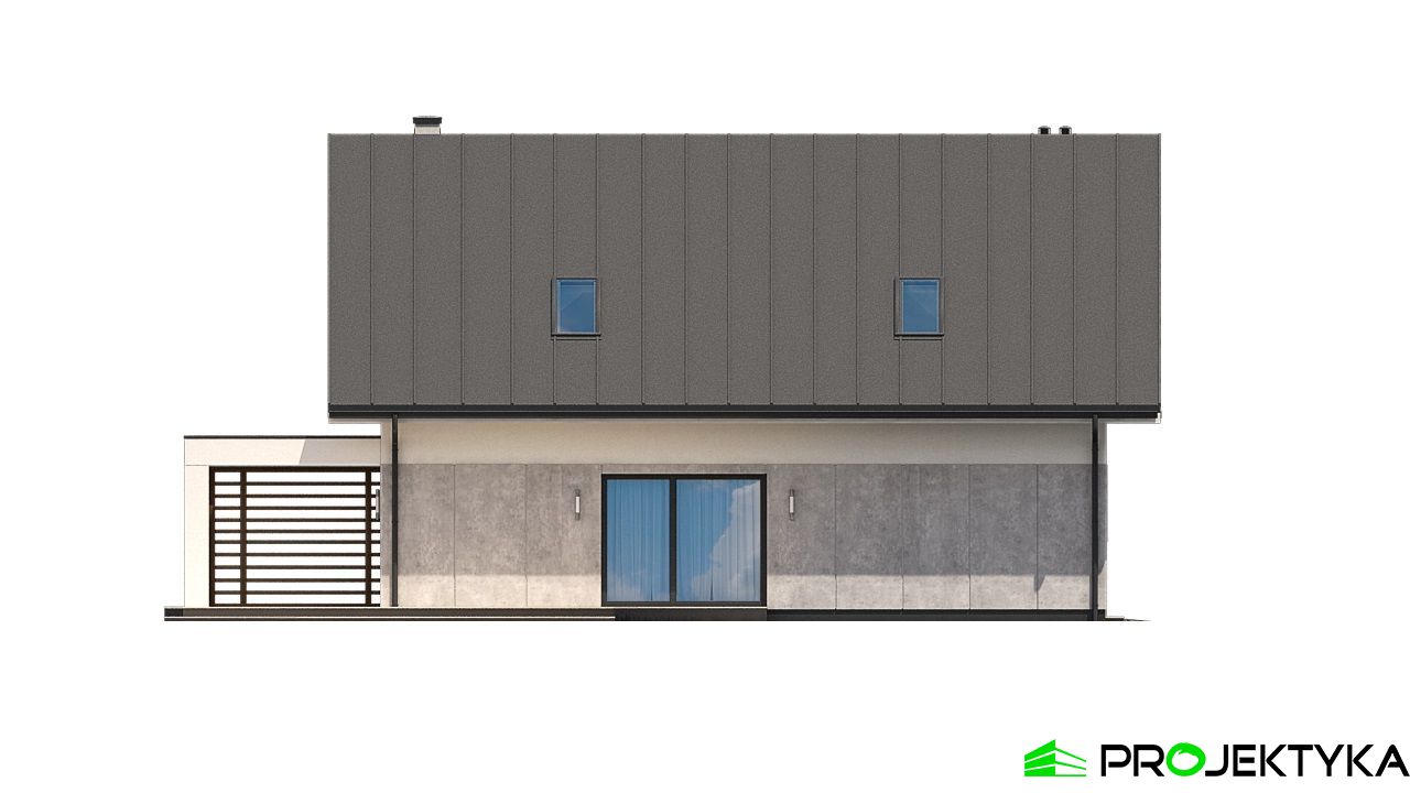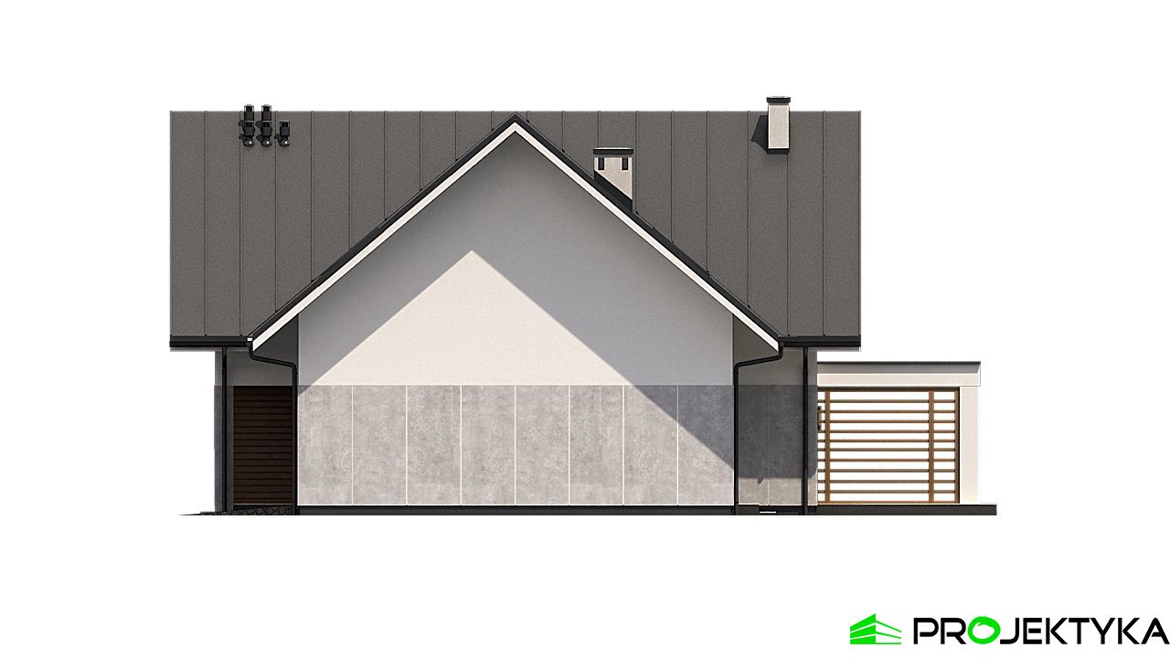 Ka52 Sz to nowoczesny gotowy projekt domu, wykonany w technologii szkieletowej drewnianej. Jego niewątpliwą zaletą jest dwustanowiskowy garaż, który pozwoli zaparkować w bezpiecznym miejscu wszystkim domownikom. Dwuspadowy dach, to atut ekonomiczny, zaś drewniana okładzina dodaje charakteru. Gotowy projekt domu z użytkowym poddaszem na parterze wydziela półotwartą kuchnię ze spiżarnią na domowe przetwory oraz część użytkową. Znajdziemy w niej przestronną jadalnię oraz salon z widokiem na ogród i wyjściem na taras. Ponadto, gotowy projekt domu jednorodzinnego przewiduje wykonanie pokoju dla gości lub gabinetu.